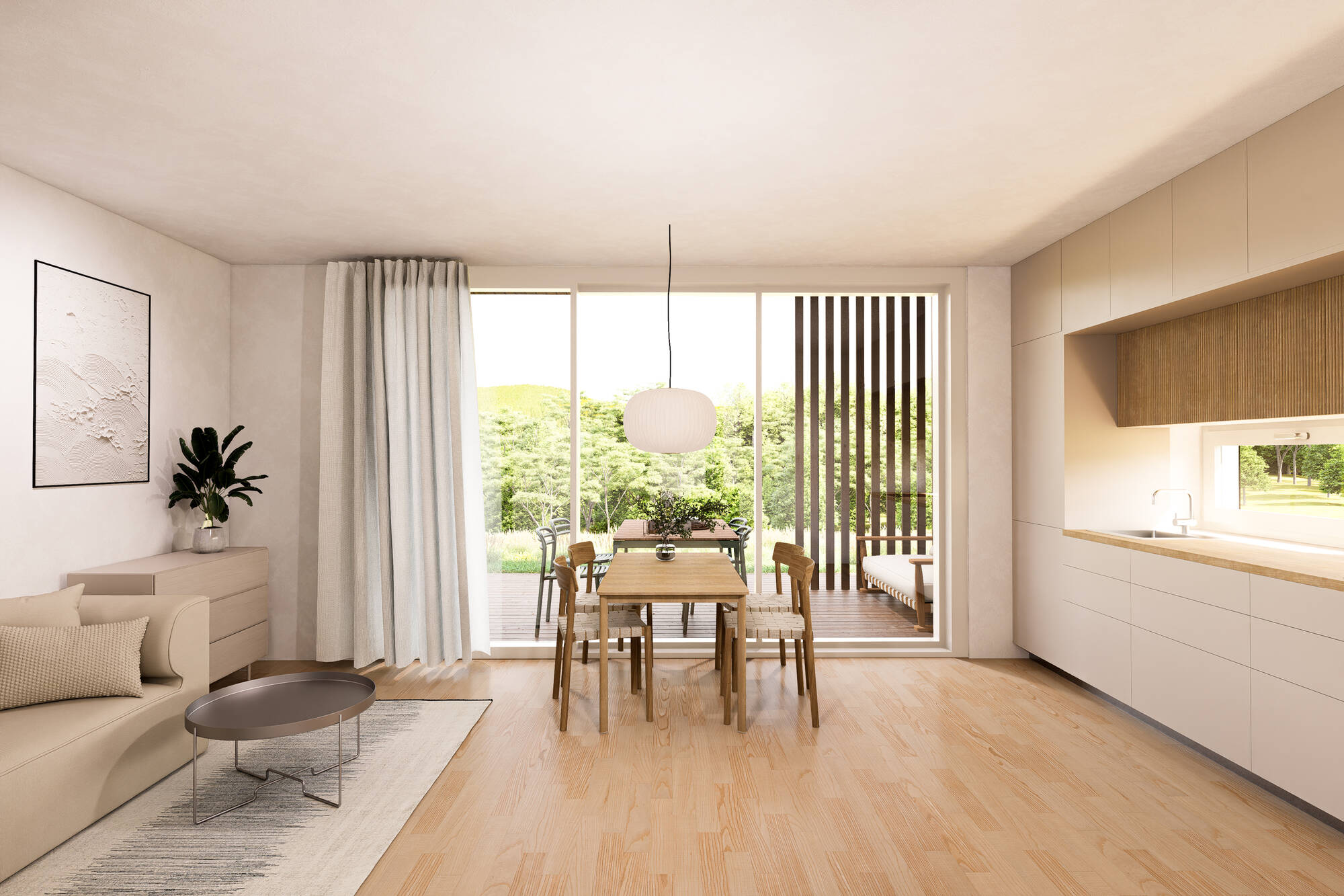 Každý klient si může zvolit rozsah dokončení podle svých potřeb a možností – nabízíme variantu hrubé stavby, apartmán ve fázi k dokončení, nebo plně hotový apartmán.